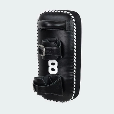 8 Muay Thai Dual strap pads are a traditional version of the tested and true pads used by the most hardcore gyms in Bangkok Thailand. Hand made in Bangkok and built to last ultra thick cowhide and nylon sides with multi layered shock absorbing padding.