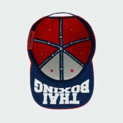 Thai Boxing snap back featuring multiple embroidery placements and a unique under bill imprint.