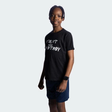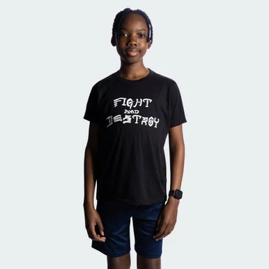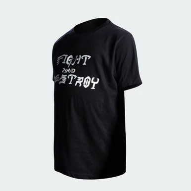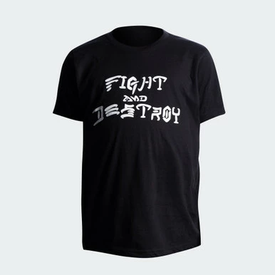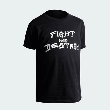 Super comfortable and fitting ringspun cotton/poly t-shirt with a nostalgic center chest Fight and Destroy imprint.